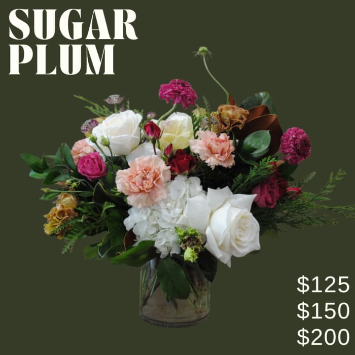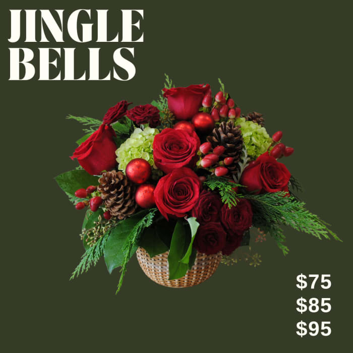 Price: $125.00Merry & Bright- Red, peach, and white holiday arrangement