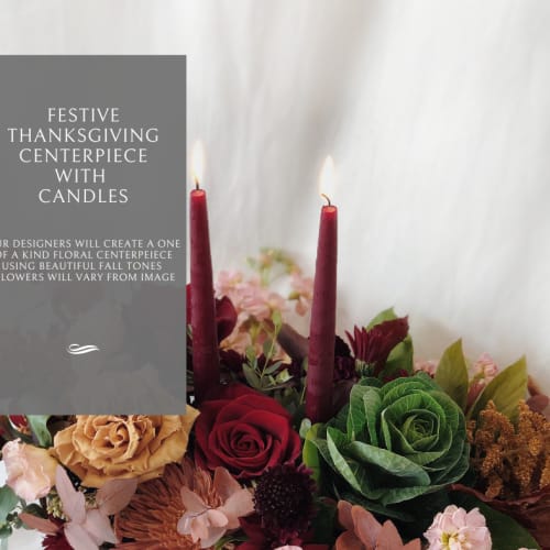 Price: $125.00Thanksgiving Centerpiece Designers Choice with candles
