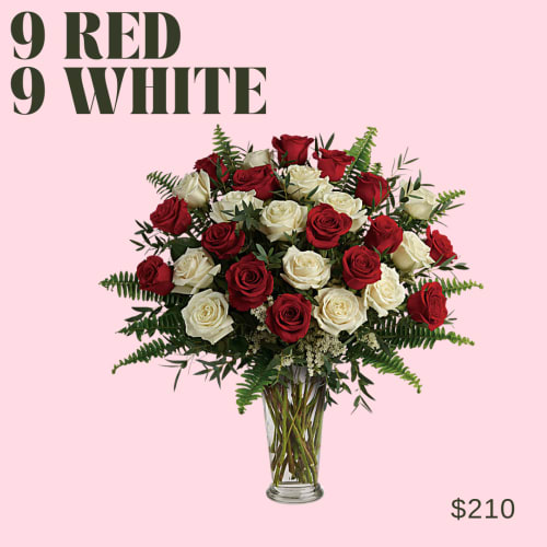 Price: $210.00Yours Truly Bouquet 9 red and 9 white roses